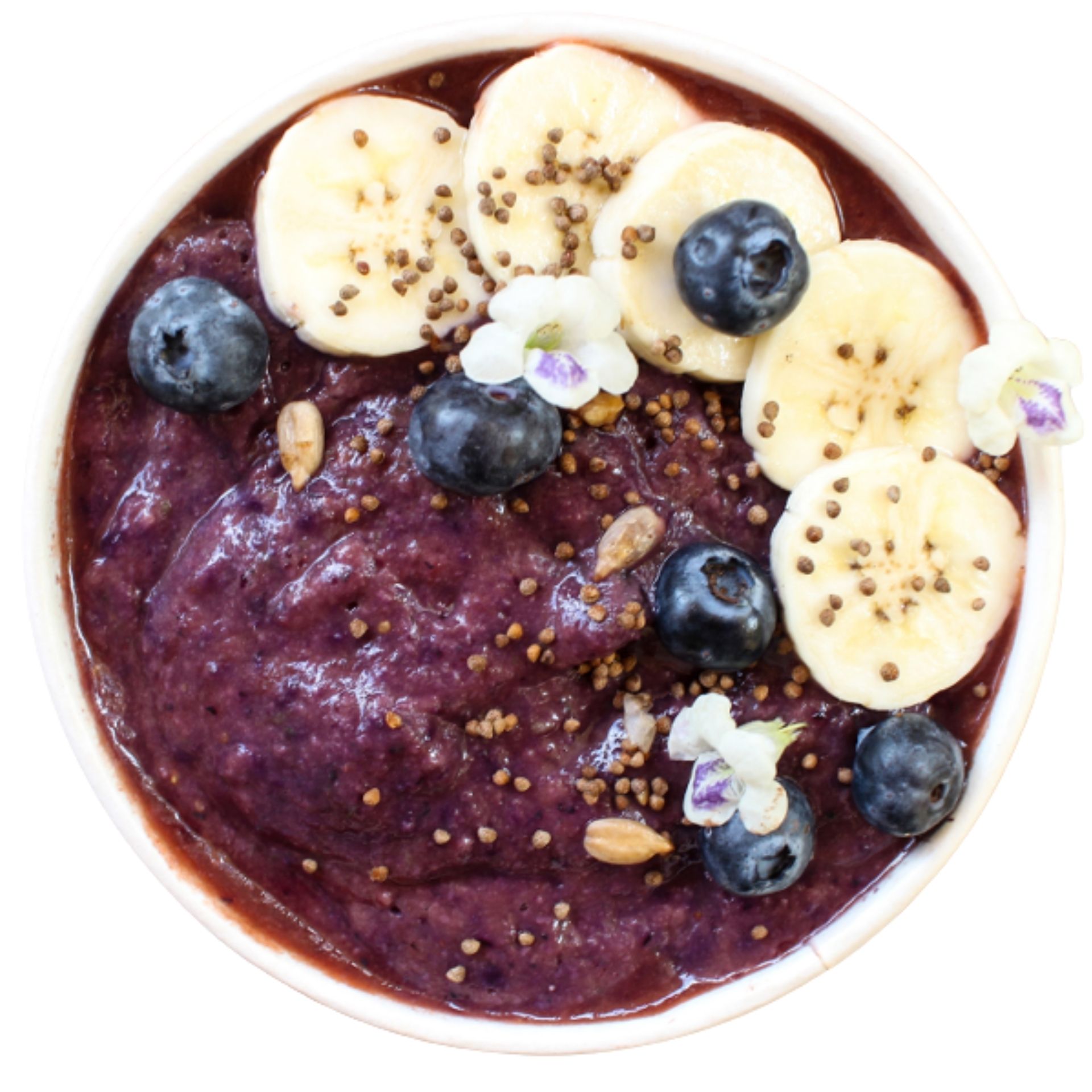 Onze bowls maken we af met verse toppings zoals fruit, granola en andere knapperige extra’s. Dat zorgt voor een frisse, zoete en crunchy combinatie